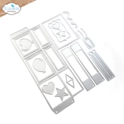 Største dies måler ca 3.9″ x 9.9″ (9.9 x 24.9 cm). 19 dies i pakken.